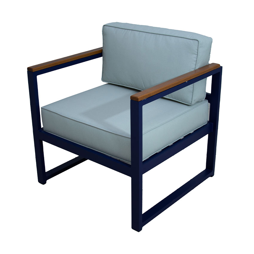 A estrutura em alumínio garante leveza, resistência à corrosão e longa vida útil, enquanto a madeira Cumaru agrega nobreza, aconchego e acabamento premium ao móvel. Já as almofadas de assento e encosto em tecido Aquablock oferecem conforto superior, além de proteção contra respingos de água, facilitando a limpeza e a manutenção no dia a dia.